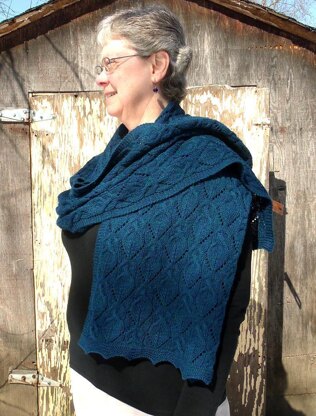 A mix of cables and lace motifs bordered by a garter stitch edging give interesting movement to this wrap, like fish swimming in the beautiful blue waters of the Caribbean. Knit it in colors inspired by the waters of the Caribbean and feel yourself being carried to the warm sand beaches as you knit.