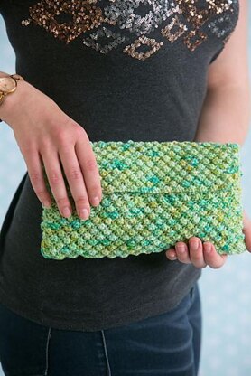 A hand-dyed yarn and bobbled texture combine to create a beautiful clutch that will remind you of your vacation all year round. Worked up in a dimensional stitch pattern with a stockinette liner, this clutch is perfect for carrying the necessities.