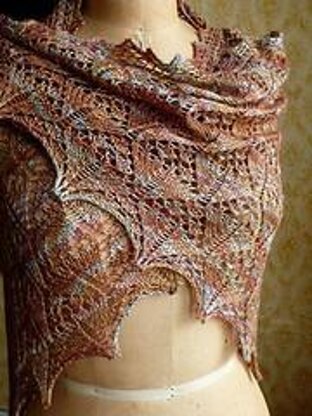 A soft and silky triangle shawl in three sizes to encircle the shoulders and body in luxury. Knit in a repeating allover motif of tiny flower bouquets that is easily mastered, this piece works up quickly and can be resized by adding/subtracting repeats or worked in a different gauge by changing yarn and needles. Top edge is self-trimmed.