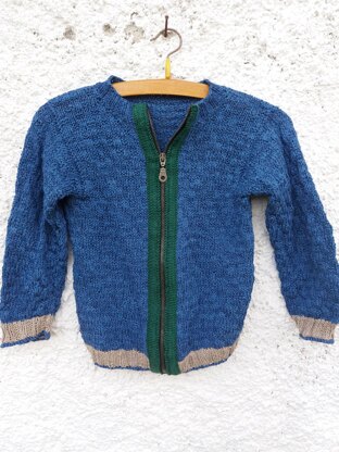 CARLA RUSTIC CARDIGAN - a smart and cosy zipped cardigan from the Carla-series for kids; here mainly plain coloured in a textured pattern in linen/cotton. The cardigan has drop-shoulder sleeves. To work from right front opening across the back to the left front opening. For the sleeves to pick up stitches along armhole OR to work the sleeves separately and then join in. Sleeve lengths are given in the pattern. Both sleeve types are worked flat. Good to work on circular needles because of the quite large number of stitches.