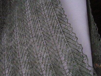 Twisted stitches emphasize this chevron design with fluted edges. It is beautiful whether it is blocked or not. Blocking emphasizes the twisted stitches. A perfect accessory for all seasons.