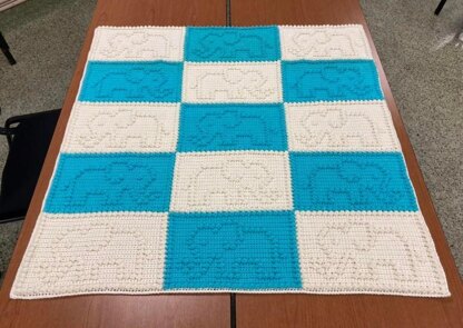 Made in one piece no sewing or joining. 2 simple stitches single crochet and popcorn or bobble This is in graph form Printable from home with * Large Easy view pages and one page computer view both are counted out for you. Suggested yarn with color chart and amounts used included with pattern. Finished size : 39 x 47 Charts are Large very easy to see after printing from home and counted.