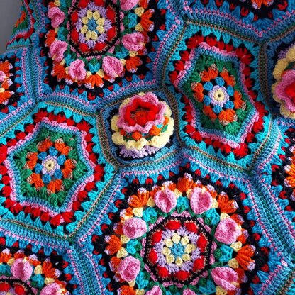 Bursting with folk-inspired granny patterns, Katie Jones' Casa Kahlo Blanket is a rainbow of colour encased in blues. Granny octogons and hexagons full of bobbles, hearts, clusters and overlay flowers are brought together with coloured seaming and this heavenly blanket of colour is the perfect antidote to low spirits and chilly afternoons.