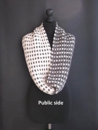 A simple, Brioche stitch, six row pattern, creates this reversible cowl using Cascade’s “Nevado” yarn.