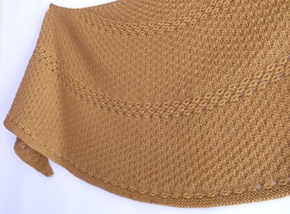 Double moss stitch and a fossil like stitch pattern, are used to create this textured half circle shawl.