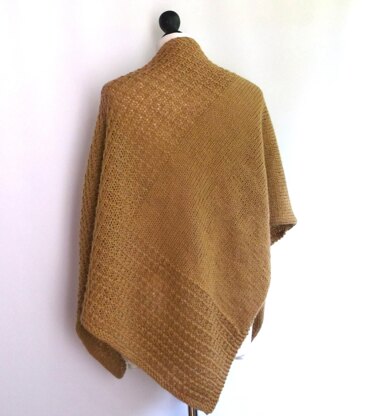 This triangular shawl is worked sideways with yarn over increases down one side. Stocking stitch and grid stitch create both smooth and textured sections.