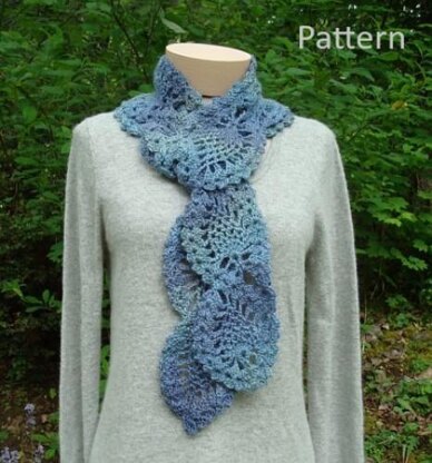A pattern for a lovely scarf crocheted in a pineapple design.