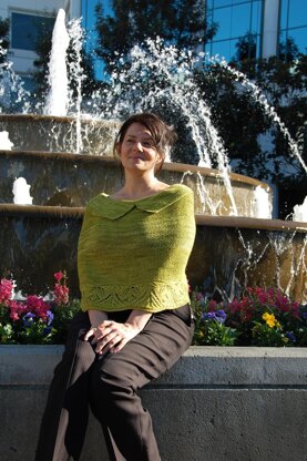 This is a pattern for a poncho. It is knit from the collar down in one piece, in the round. There is raglan shaping for the shoulders and size is easily increased. The majority of the poncho is in seed st with a budding lace edging.