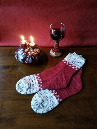 You will be taking a nice comfy walk around the castle in these cozy toe-up socks.