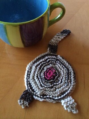 This is a cute little coaster for cat lovers! It is a quick knit that doesn't use a lot of yarn.