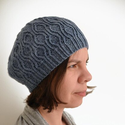 Twisted stitches look incredibly elegant popping off the purled background and are most common in Austrian cabled patterns, which inspired this hat. Worked from the brim up with verticals growing organically into the main body and further into the domes of the crown.
