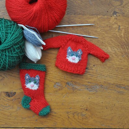 Cat Christmas Stocking and Sweater Ornaments Knitting Pattern