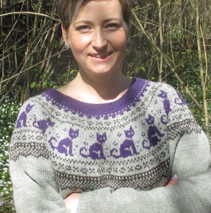 This lovely cat sweater is knitted in rounds top down and in one piece - No sewing required!