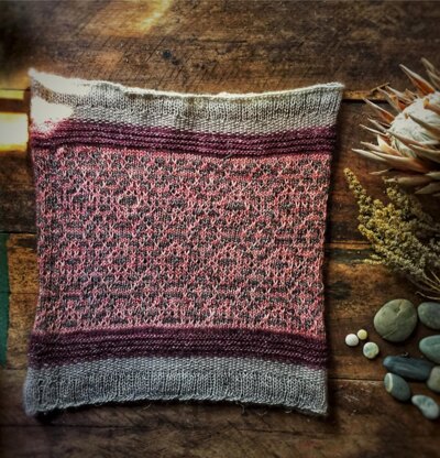A gorgeous combination of stitch patterns flowing together to form the Catalina Cowl, a tribute to Queen Catalina of Aragon, Spain.