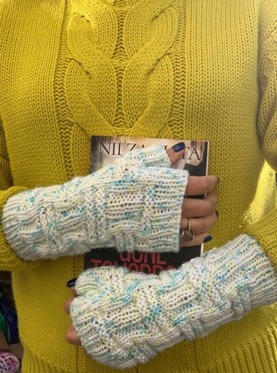 Any DK weight yarn can be used: Navy mitts -Stylecraft Special DK 100% acrylic, 50g, 165 yards (150 meters) in M/L size and less for the S/M size.