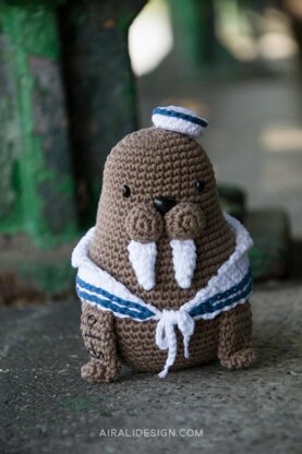 Crochet amigurumi pattern for an adventurous walrus.