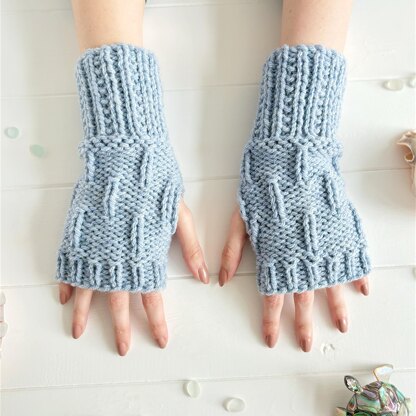 The pattern is easy plus - all patterns are created just using the knit and purl stitch, but there is one decrease row, that involves purling 2sts together. Skills needed are cast/bind on and off, knit and purl, purl 2 together and sewing up. A gap is left for the thumb. Instructions are in English with British/USA terms. Any chunky/bulky yarn should be fine, but please check your tension/gauge. Knit flat and sewn up.