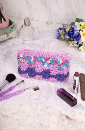 This is a pattern for a Catherine wheels make up bag, originally published in Your Crochet and knitting. It was made using a kit yarn for the original, an alternative yarn using the same weight and similar colours has been suggested. It uses very small amounts of yarn and is a good way to use up spare yarn. Photo Your Crochet and Knitting.
