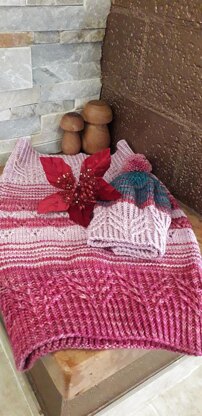 MaterialsMalabrigo Rios (100 g, 210 yds, Pure Merino Superwash): 25 gr of DK/Light Worsted yarn, 689 Valentina (MC); 20 gr of DK/ Light Worsted yarn, 057 English Rose (CC1); 20 gr of DK/Light Worsted yarn, 133 Reflecting Pool (CC2). Needles: 4 mm US 6 40 cm 16” circular needle, or a longer circular needle for to use the magic loop technique. Other: 1 Stitch marker, Cable Needle, Tapestry needle, Scissors.