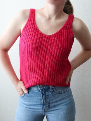 The Cavalcade Camisole is a great staple piece to add to your wardrobe. Because of its knit-like texture and short row shaping, it has a timeless, classic, and luxurious look and feel. Wear alone or layered with your favorite button-down and paired with a wide-leg linen pant, high-waisted jean, or flowy summer skirt.
