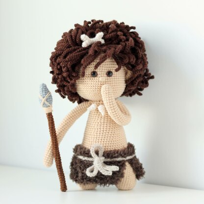 This pattern includes 1 PDF file, 9 pages, and 60 step-by-step pictures. The pattern is written in English, using US crochet terminology. ✩ Skill level: intermediate (**). You should know basic crochet stitches including chain, single crochet, increase, decrease, slip stitch, crochet in back loops only. ✩ Size: the caveman doll is approx. 11 inches tall. Materials: light worsted (DK) weight yarn in beige, white, brown and gray colors; fluffy brown yarn for a skirt; crochet hook 2.5 mm; safety eyes 10 mm; yarn needle; fiberfill for stuffing.
