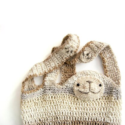 Finished sloth shopper will measure around 46cm/18” tall (including straps) and 28cm/11" wide when made in Noro Silk Garden with 5.00mm hook. You will need around 80g of main colour yarn and 20g of contrast colour. The pattern can be easily adapted to make a larger size bag too.
