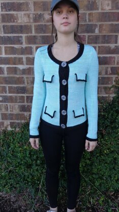 I designed this cardigan with the idea of wearing it to all my holiday celebrations. It is perfect with a little black dress or a pair of jeans. It has decorative pockets that are optional.