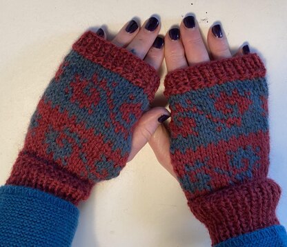 The patterns has written instructions and a colour coded chart for yarns used in the photo. One can make them longer by adding additional rows and yarn. You need 2 balls of alpaca or DK yarn with the same gauge.