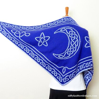 Celtic knot designs have long been featured in knitted garments and accessories. The gorgeous and elegant Celtic Luna Shawl depicts a Celtic knot moon and stars surrounded by a stylish Celtic border.
