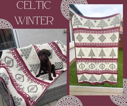 This pattern is for an Overlay Mosaic Blanket with a Celtic Winter or Christmas theme. The pictured blanket is a large throw measuring 185 cm x 125 cm. It was made using Aran yarn and a 4mm hook but DK could be used and a smaller blanket would be created. The number of section used or repeats made could also make the blanket smaller or larger.