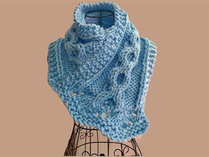 The cowl uses lace and cable techniques for a very unusual, stylish finish. The stitches are easy to work - abbreviations are well explained.