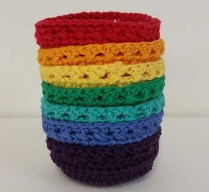 The bowl size can be varied by adjusting hook size, yarns and number of strands used.
