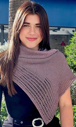 MUESTRA DE TENSION 26 puntos x 30 vueltas en punto bobo. AGUJA y CABLE Aguja de 3,50mm. 1 Cable de 80 cm. CONSTRUCCION Este es un chal triangular asimétrico, comenzando con un montaje de icord tubular de 9 pts. Mantiene un borde de icord en todo el patrón. El motivo de corazones se realiza en solo dos filas, (LD) y (LR). Los aumentos se realizaran cada 4 filas en el (LD),en un solo vértice. Contiene enlaces a tutoriales de todo el proceso.