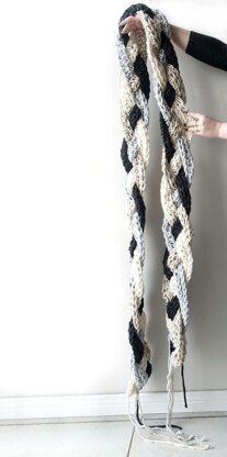 A plaited extra long scarf, super warm and cozy! Wraps multiple times.