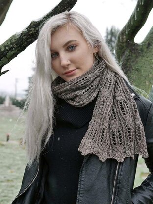 This richly textured scarf or stole makes for a festive holiday accessory—and it continues to add the right touch of bling long after the tree is down and the ornaments are tucked away. Especially glowing in a yarn with a bright sheen or a rich halo, this motif could also take on an organic, earthy character when knit in a tweedy natural shade, to appear more like twisted vines or grasses. And while it has a somewhat complex appearance, the stitchwork is surprisingly quick and easy when a last-minute gift is needed.