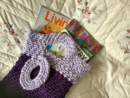Texture beyond texture in the Chantilly Tote Bag. Crocheted entirely in one piece with no seams. Built in handles and detachable motif. Sturdy and roomy. Simple crochet stitches used. CARON BRAND ONE POUND YARN USED IN THIS PATTERN.