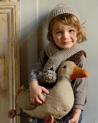 Charlie hat and scarf is a simple, yet adorable design for a little boy or a little girl. The technique is simple, yet the construction and the pompoms make it a very special product that any child will adore! This scarf is another great developing project for a novice knitter. It introduces increasing, decreasing and holding of stitches. As you only work in garter stitch, it is easier to keep track of the shaping! Whereas the hat uses short row shaping and is worked sideways in segments so it is different and exciting to make!