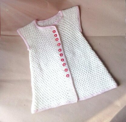 IMPORTANT! Yarn requirements: 2 balls for the cardigan, 3 balls for the dress, scraps of pink, light blue, or any colour you like.
