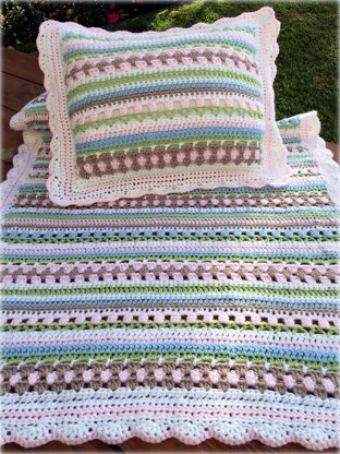 Easy blanket and pillow pattern. This blanket is made with 5 different colors of worsted weight yarn.