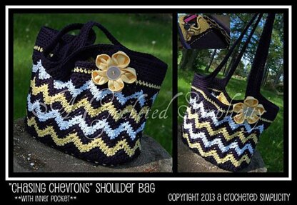 "Chasing Chevrons" Shoulder Bag is my Original Design! It is a very versatile bag as it can be made in any color combo and made for a variety of uses such as toting around your latest yarn projects or the latest in your purse collection! It would also be great as a smaller diaper bag for the perfect baby shower gift!