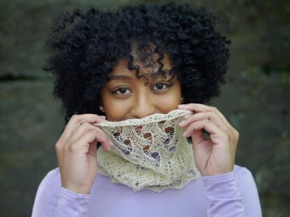 This gossamer neckwarmer in two sizes (S/L) echoes the movement of natural grasses and vines in its tangled forms. The pleasantly irregular pattern of ever-changing angles is produced by introducing rest rows in one part of the motif and removing them in the other. Worked in the round with the right side facing at all times, the lace knitting is quite intuitive and easy to work with simple stitch maneuvers, making this a great project for any knitting level. The final fabric is delicate and at the same time, has a somewhat rustic and organic appearance, with interesting edges. It makes for a stunning accessory to gift or keep.