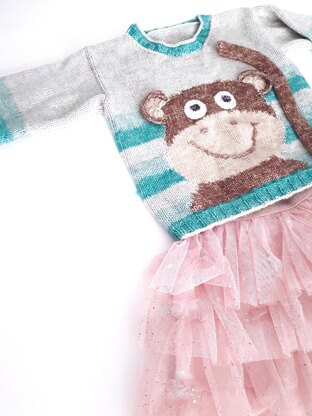 Once they have taken a break from pulling funny faces, making jokes or pranking their friends, your very own cheeky monkey is sure tolove their funky new sweater! But more importantly you should love working on this project, as it is the ideal opportunity to practise working with stripes and intarsia.
