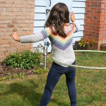 Inspired by the Adult's Rainbow Smiles Sweater, Cheeky Rainbows is a child’s version of the top down crochet raglan pullover. With a gentle v-neck and rainbow chevron, this is a fitted pullover aimed at bringing a splash of colour and a smile to the wearer!