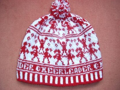 It is a two color beanie and can therefore be knitted any cheerleader team colors.