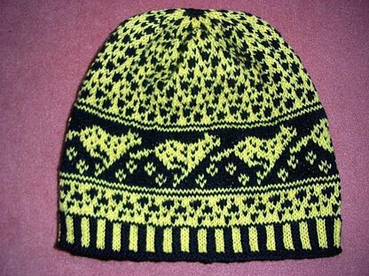 The cheetah can make up to 115 km per hour and is such an elegant and lovely animal that I had to put it on a beanie. The beanie has a band of running cheetahs in full speed with cheetah dots all around. You can make a normal beanie or a more slouchy one by adding another pattern repeat at the top. My images show the more slouchy version. You can also add another pattern repeat in width to make it even more slouchy.
