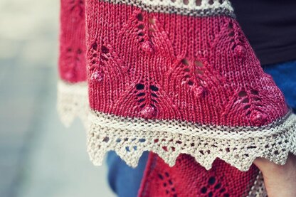 Inspired by the Alpine countryside and worked up in a Swiss silk blend, this shawl is an extra-special treat as its name implies. Have your way with color combinations in this half-macaroon shaped beauty that features a leafy pattern stitch with cherry-like bobbles and a zigzag lace border.