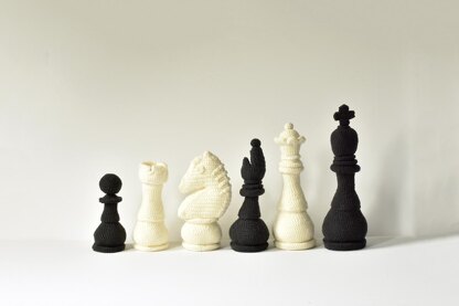 This pattern set features the following patterns for the following items: - King chess piece - Queen chess piece - Knight chess piece - Rook chess piece - Bischop chess piece - Pawn chess piece