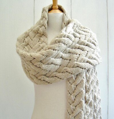 KNITTING PATTERN for a striking, super cozy wrap. Beautiful, intricate pattern - looks complicated but is manageable for a practiced beginner used to basic knitting abbreviations and simple cabling.