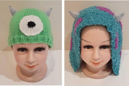 Both the one eyed green monster hat and the fluffy blue and purple monster hood are designed to fit a head with a circumference of between 45 and 52 centimeters.