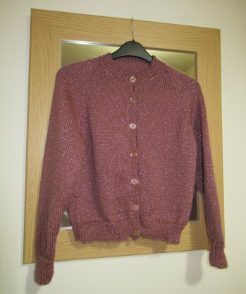 An easy to knit cardigan for children, aged 7 to 10 years, with 3 chest sizes from 26" to 30". The image shows King Cole's lovely Glitz DK yarn, but this pattern can use any DK yarn.